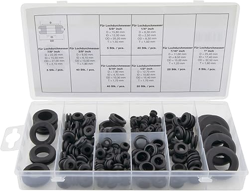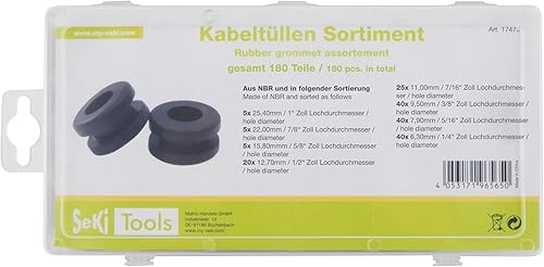 SeKi 17473 Kabeltüllen Sortiment 180 Teilig Gummi-Durchgangstüllen, Schwarz