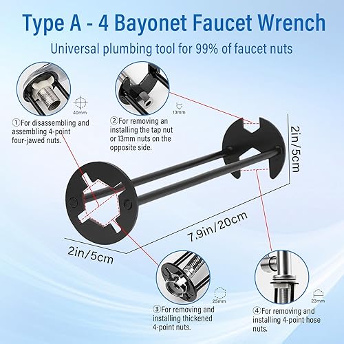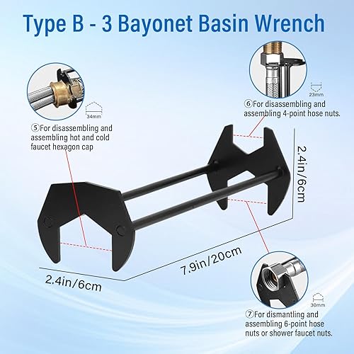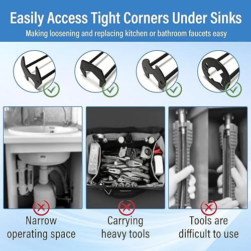 2 Stück Beckenschlüssel Multifunktionaler Spülenschlüssel Waschbeckenschlüssel 7 Größen universell unter Waschbecken Klempner Schraubenschlüssel Vier-Backen-Sechskant-Schlüssel für Küchenbad