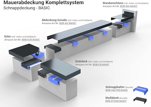 Alu-Mauerabdeckung Komplettsystem - Abdeckung 2,0 m inkl. 3x Schnapphalter und 1x Stoßblech - Größe: L, Farbe: Anthrazit RAL 7016