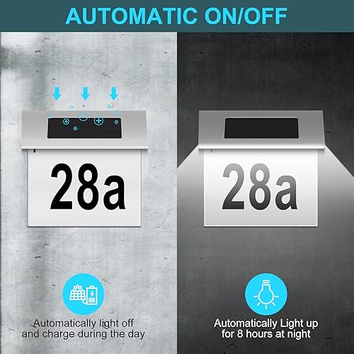 Solar Hausnummer LED, YUNYODA IP44 Wasserdicht Edelstahl Beleuchtet Adressschild mit LED, Hausnummer Beleuchtet Solar Dämmerungsschalter Bewegungsmelder für Außen Tür Garten