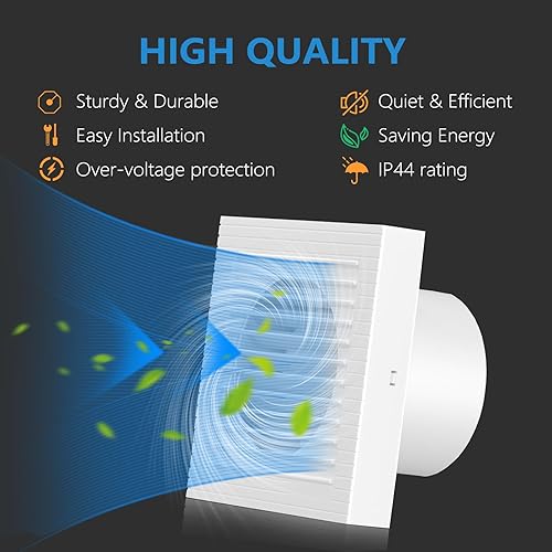Hon&Guan 100mm Badlüfter, 80m³/h Abluftventilator mit EU-Stecker, Regelbar Leise Ventilator, für Badezimmer, Küche, Wohnzimmer, Schlafzimmer, Decke, Weiß