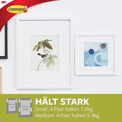 Command Bilder-Montagestreifen, Bildaufhänger, Vorteilspack mit 8x2 Größe L und 8x2 Mittel, Weiß - Befestigung ohne Bohren