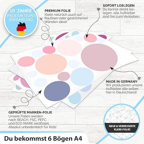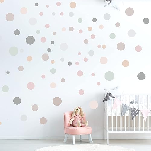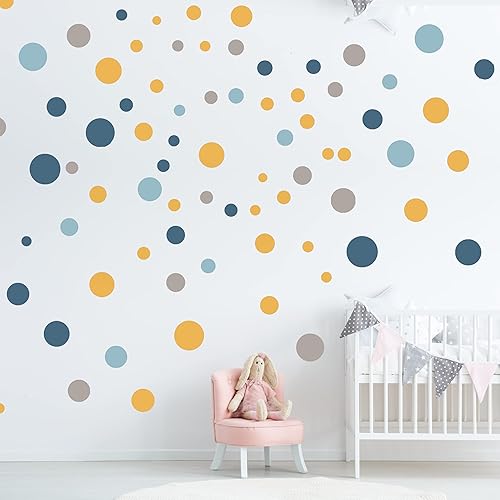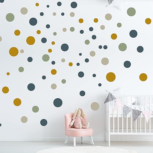 ELES VIDA - Wandtattoo Punkte fürs Kinderzimmer - 100 Stück Wandsticker Set - Pastell Farben für Baby zum Kleben Wandaufkleber Sticker - Wandfolie Dots Kreise, Pastell Olivgrün Dunkelblau Kaki Grau