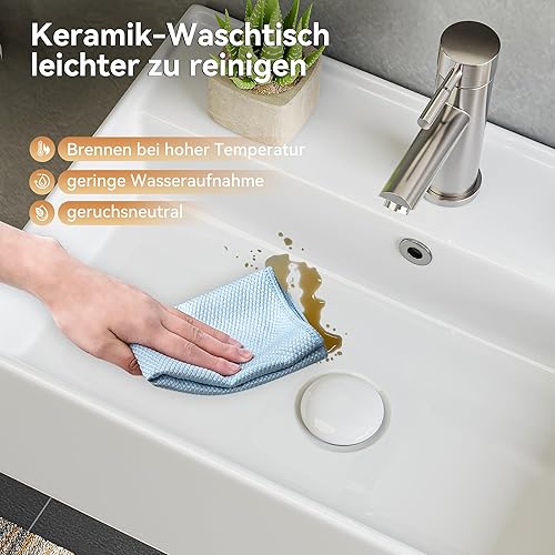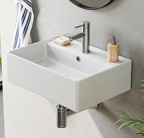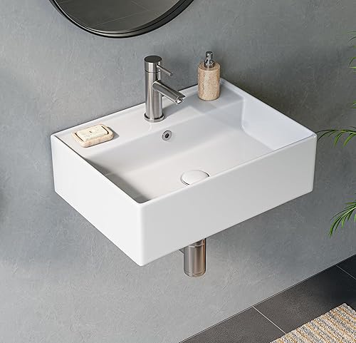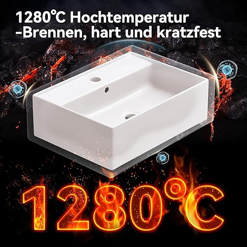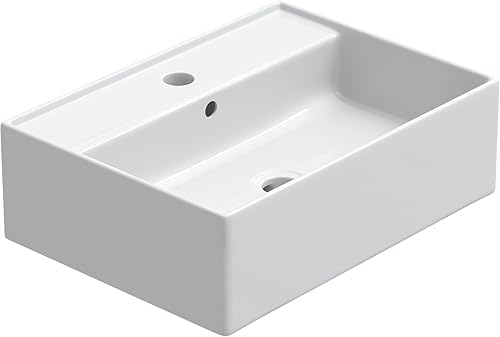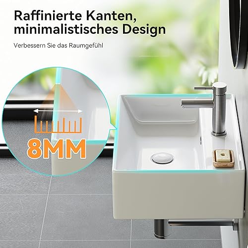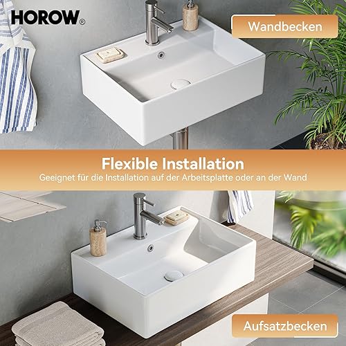 HOROW Waschbecken Bad Eckig 40 cm, Moderner Waschtisch Weiß, ohne Überlauf, mitHahnloch, Kleine Handwaschbecken, Hängewaschbecken Aufsatzwaschbecken Gäste WC