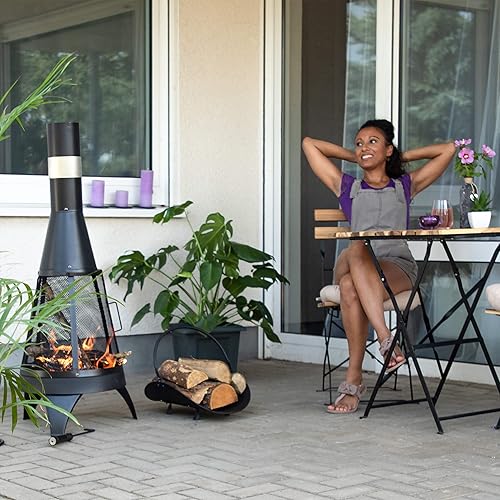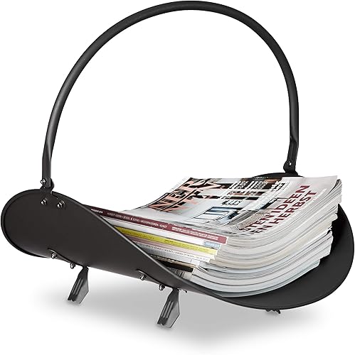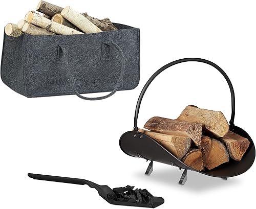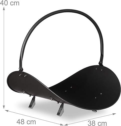 Relaxdays Kaminholzkorb schwarz, Brennholzkorb groß, Holzwiege Kamin, Feuerholzkorb Metall, HxBxT 40 x 38 x 48 cm, black