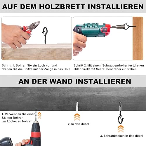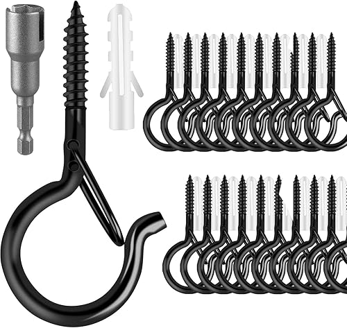 Dayalo 24 Stück Schraubhaken Weiß, Schraubhaken Klein, Schraubhaken Edelstahl, Schraubhaken mit Sicherung für Pflanzenkörben Vogelhäuschen Windspielen Lichterketten, inklusive 1 Flügelmutterndreher
