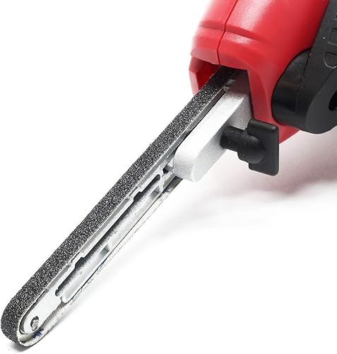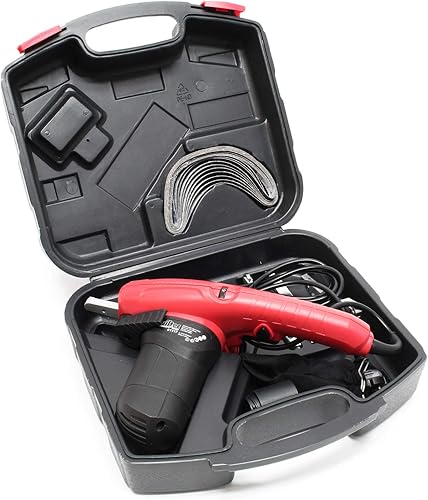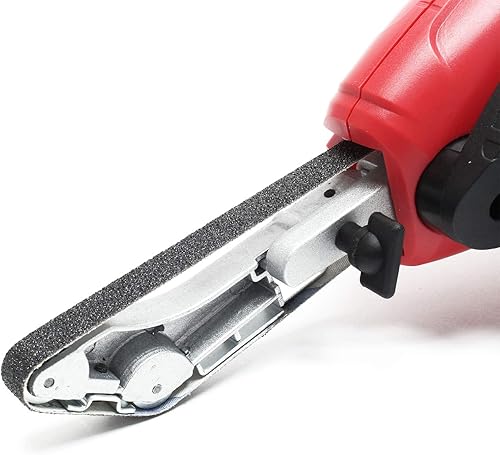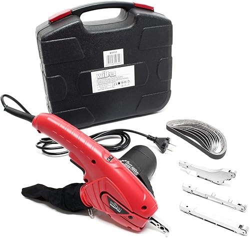 Wiltec Bandschleifer 400 W mit 3 austauschbaren Schleifarmen, Schleifmaschine mit 10 x Schleifband, Elektrofeile für schwer erreichbare Stellen