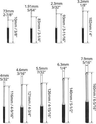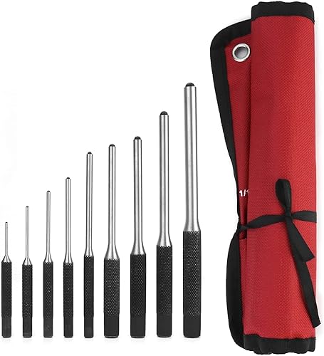 QWORK 9-tlg Splinttreiber Satz 1.5mm - 8mm | 1/16'-5/16' Durchschlag Werkzeug mit Tasche zum Einrollen