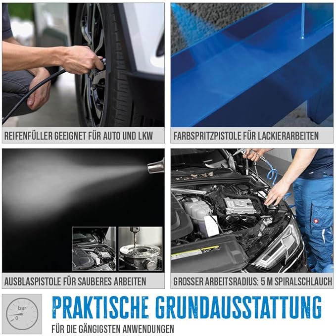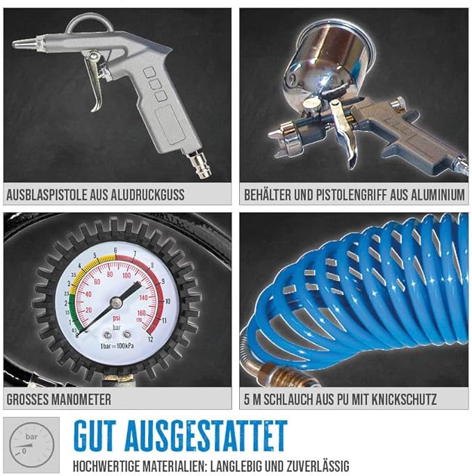 Güde 84092 Druckluft-Set 4-tlg. Metall (Kompressoren-Zubehör, max. Arbeitsdruck 10 bar, 1/4' Anschlussgewinde)