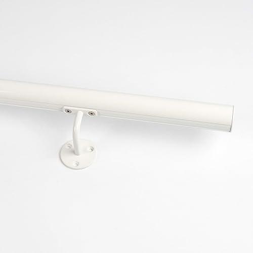 Moderner Aluminium-Handlaufin Weiß, hochwertiges Komplett-Set inkl. Wandhalter, Dübel und Schrauben. Länge 1500 mm (kürz- und verlängerbar). Für Innen und Außen geeignet.