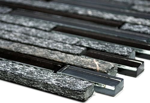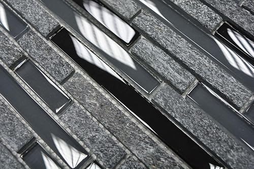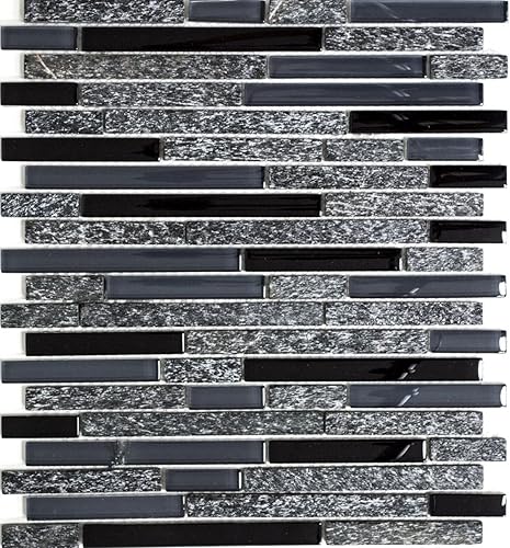 Mosaik Fliese Transluzent grau schwarz Verbund Glasmosaik Crystal Stein grau schwarz für WAND BAD WC DUSCHE KÜCHE FLIESENSPIEGEL THEKENVERKLEIDUNG BADEWANNENVERKLEIDUNG Mosaikmatte Mosaikplatte