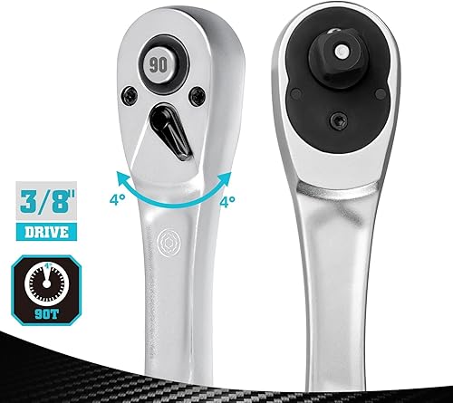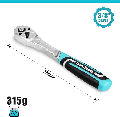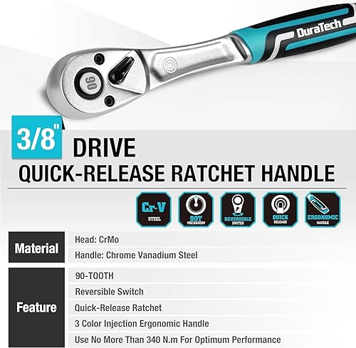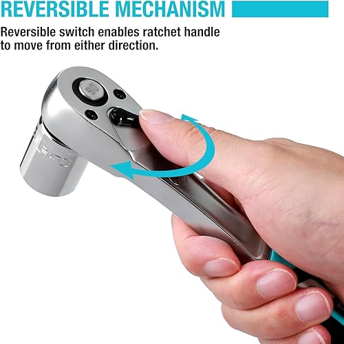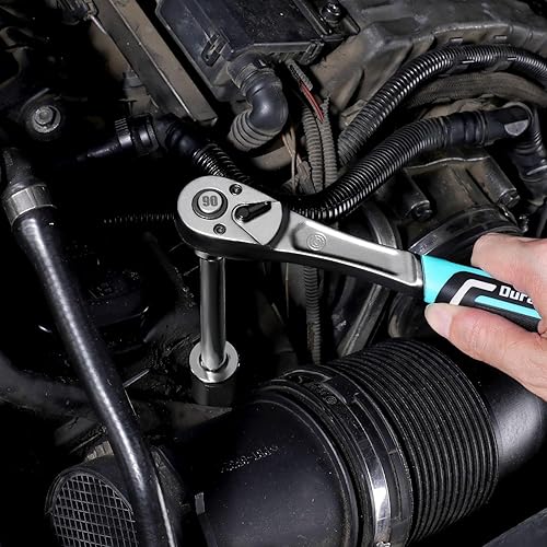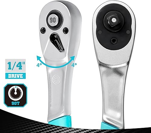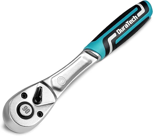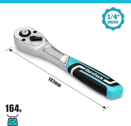 DURATECH Umschaltknarre 1/4” Vierkantantrieb, Umschaltbare Ratsche 90 Zähne, Ratschengriff mit Schnellspanner, aus Chrom-Vanadium-Stahl, kleiner Betätigungswinkel 4° für enge Bauräume