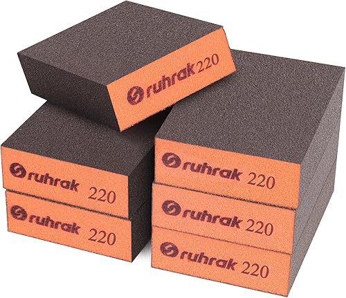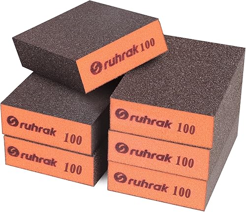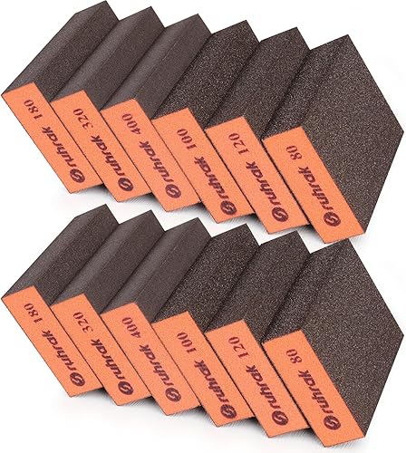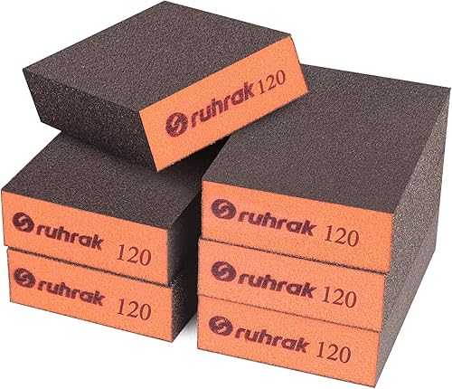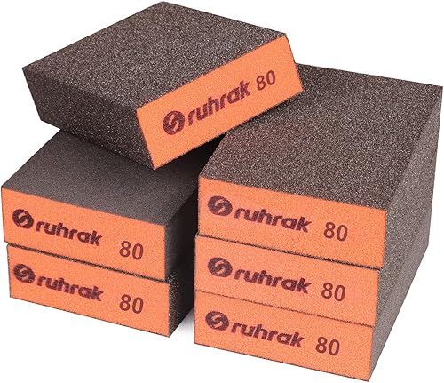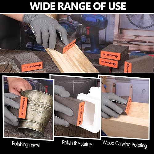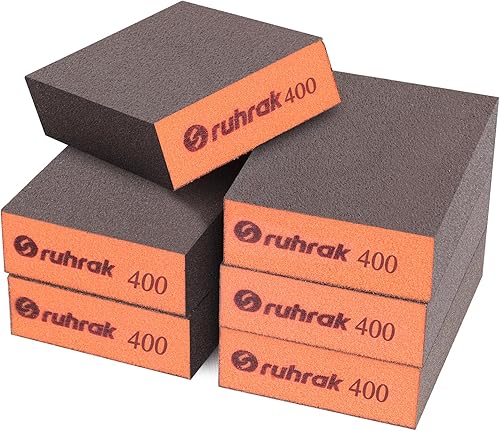 Sruhrak Schleifblock 6 Stück Hart Schleifschwamm, 80/100/120/180/320/400 Körnung Nass-Trocken-Wiederverwendbare Schleifpad für Holz, Kunststoff, Gipskarton und Metallpolitur
