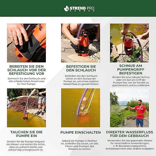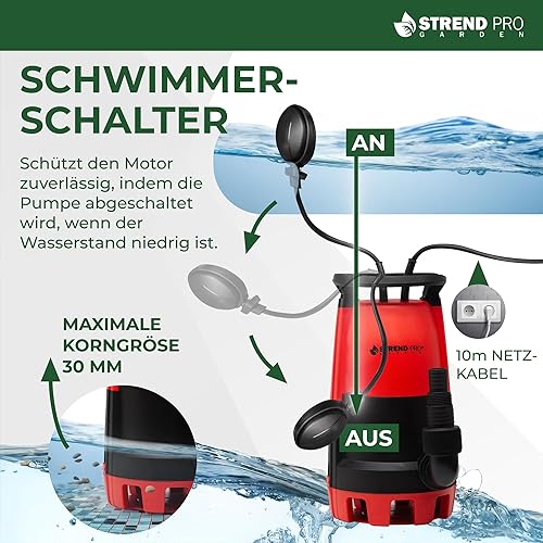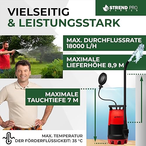 STREND PRO Tauchpumpe MC900E | FLACHSAUGEND ab 1mm | mit SCHWIMMERM | 900W, 18000 l/h | Wasserpumpe | KLARES UND TRÜBES WASSER aus Schwimmbädern, Stauseen, Brunnen, Schächten | Schmutzwasserpumpe