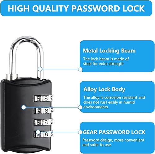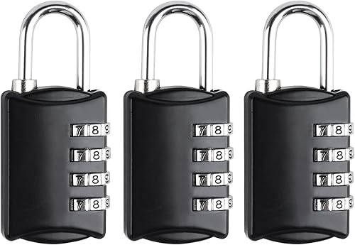 3 Stk Vorhängeschloss Zahlenschloss, 4 Stellig Vorhängeschloss Kombinationsschloss, Vorhängeschloss mit Zahlencode, Zahlencode Lock Wetterfest, für Tür/Spind/Gartenzäunen, Schwarz/Silber/Rot