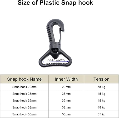 BAIWOAK Kunststoff Snap Hooks,20mm, 25mm, 32mm, 38mm, 50mm Kunststoff Swivel Snaphook Push Gate Clip Rotary Snaphook Drehen Klaue Snap Clip Schnalle Verschluss Haken für Gurt, Schwarz