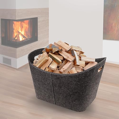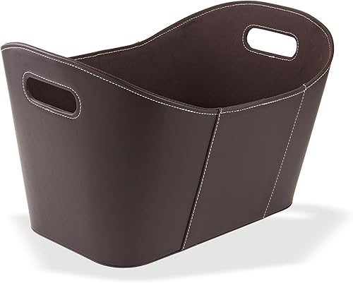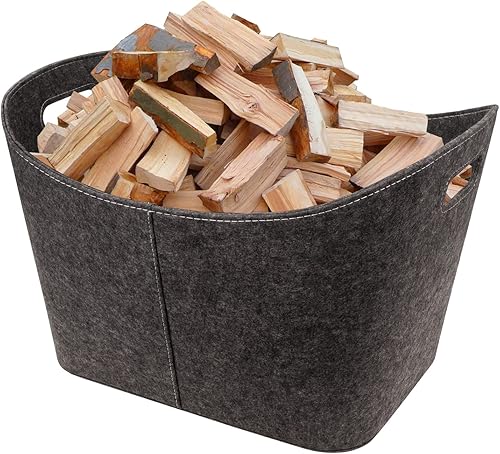 Holzkorb Tasche Korb Kaminholzkorb Brennholzkorb Feuerholzkorb Brennholzholztasche Kunstleder braun coffee 53x35x31 cm
