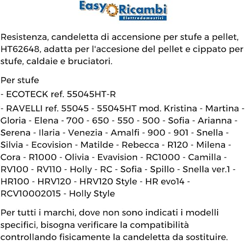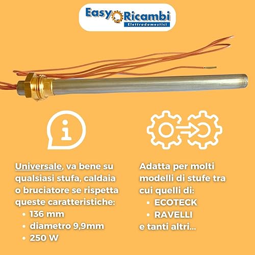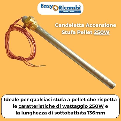 Easyricambi - Zündkerze für Pelletofen 350 W, Durchmesser 12,5 mm und Länge unter Anschlag 160 mm (Gesamtlänge 170 mm), Gewinde 3/8 Zoll Gas, Ersatzteil für Modelle: Palazzetti Royal Edilkamin
