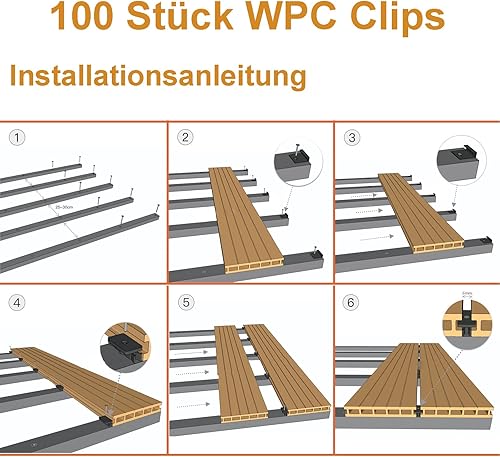 30 Stück WPC Befestigungsclips Anfang/Endklammer, Versteckte Starter Befestigung Board Clip mit Selbstschneidender Schraube Edelstahl DIY Hardware (Schwarz)