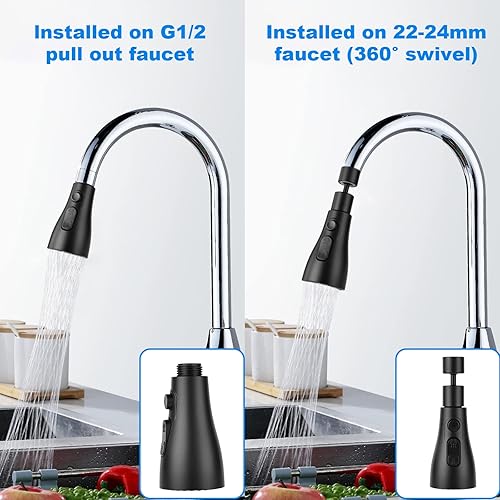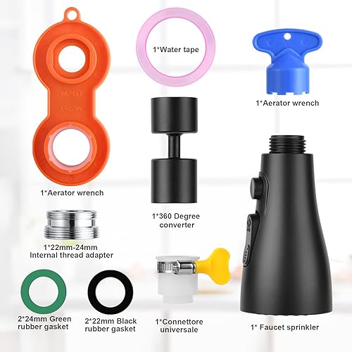 OSDUE Wasserhahn Luftsprudler, 3 Modi Küche Bad Wasserhahn Bubbler Filter mit 2 (M22 und F24) Adaptern, 360 Grad Schwenkbarer Multifunktionaler Wassersparender für Küche/Bad Hahn