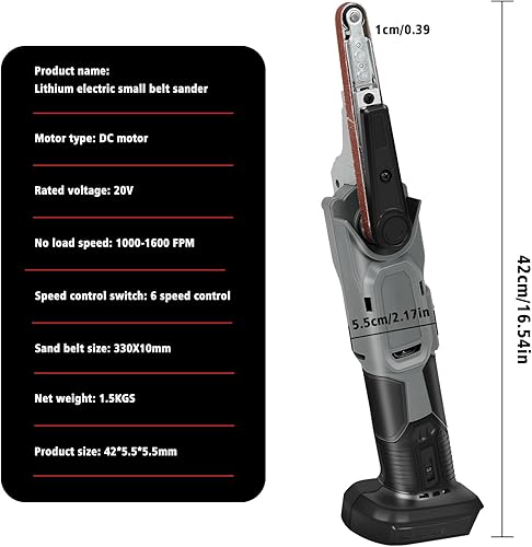 Akku Bandschleifer kompatibel mit Makita 18V Akku, 10 x 330mm Elektrische Feile mit 3 Schleifbändern, 6 Geschwindigkeiten, 35° Einstellbare, Bandfeile zum Polieren von Holz und Metall (ohne Akku)