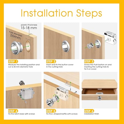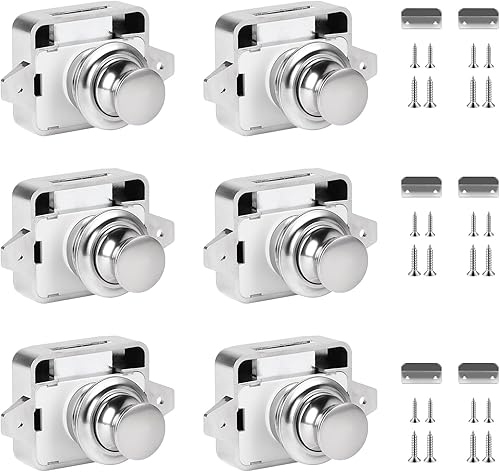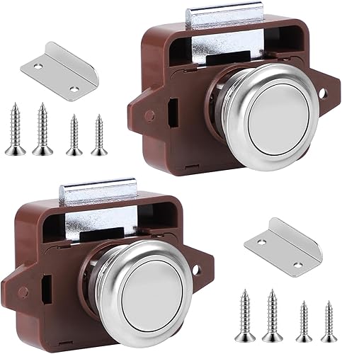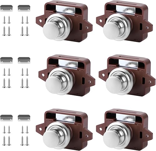 SUPAWAY 6 Stück Druckknopf Riegel Verriegelung, Keyless Metall Push Button Lock, Verriegelung Cabinet Lock Braun, Wohnmobil Wohnwagen Riegel Knopf, Push Button Catch für Tür, Schrank, Yacht, Schiff