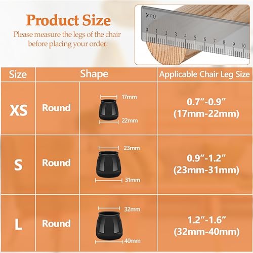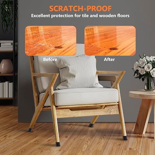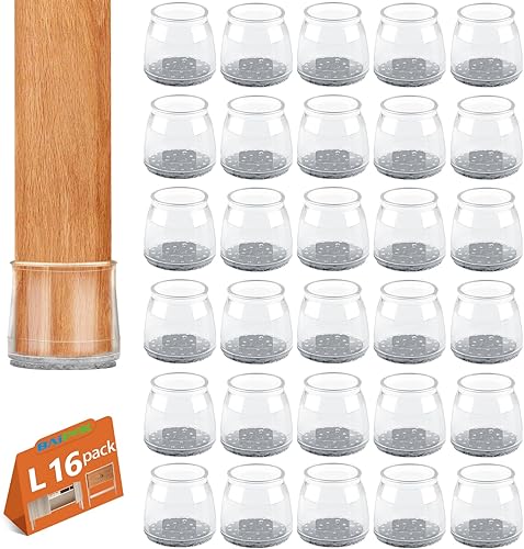 BAIPOK 16 Stück Bodenschoner für Stühle, Stuhlbeinkappen Rund, Schutzkappen für Stuhlbeine Mit Filz,Silikon Stuhlbeinschoner für Hartholzböden, 17-22MM
