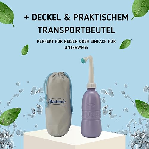 Badimo Po-Dusche - Reise-Bidet spart Papier - mobile Reise-Po-Dusche - Hygienische Reinigung unterwegs - Popo Shower + Deckel & Reisebeutel
