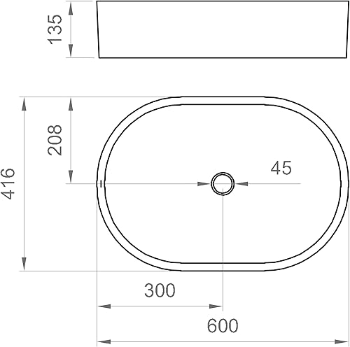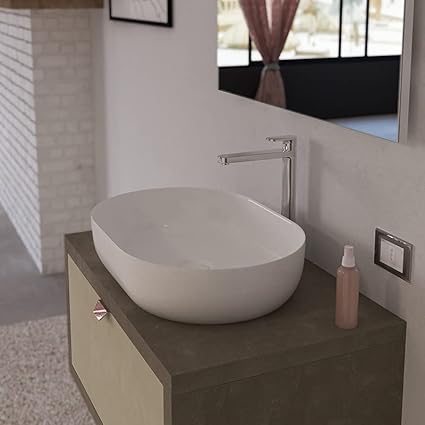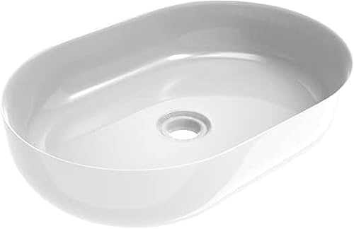 ERCOS Runder Keramik Aufsatzwaschtisch, Badezimmer Waschbecken Farbe Weiß Glänzend, ohne Überlauf, Größe Durchmesser 410 mm