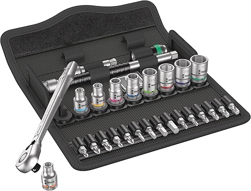 Wera 05004018001 8100 SA 8 Zyklop Metal-Knarrensatz, Umschalthebel, 1/4 Zoll -Antrieb, metrisch, 28-teilig