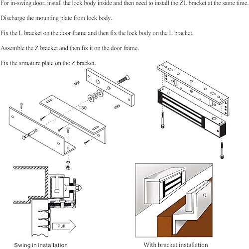 FTSTech DC 12V 180KG Elektrisches Magnetschloss 350lbs Haltekraft inkl. ZL-Halterung, für Home Security System,Geeignet für Holz/Metall/Glastür