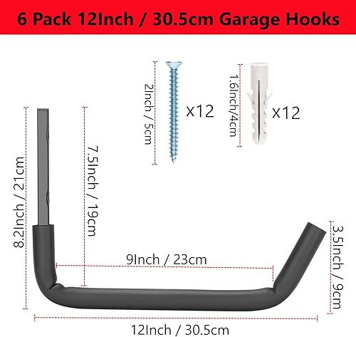 Strapazierfähige Garagen-Leiterhaken mit 30,5 cm Jumbo-Arm, 8 Stück, wandmontierte Aufbewahrungshaken für Fahrrad, Klappstühle, Fahrrad und Gartengeräte