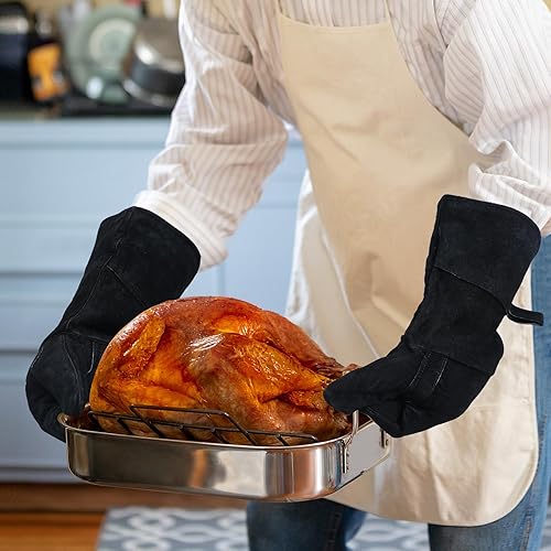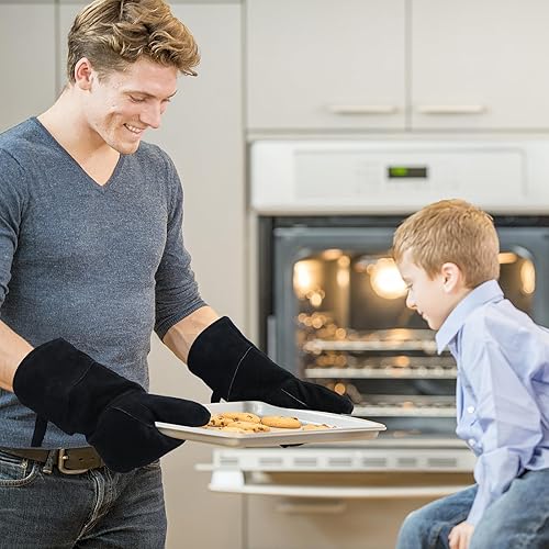 YARNOW 1 Paar hitzebeständige/feuerfeste Handschuhe Leder Ofenhandschuhe Kaminhandschuhe zum Schweißen von Kamin, Herd, Ofen, Grill