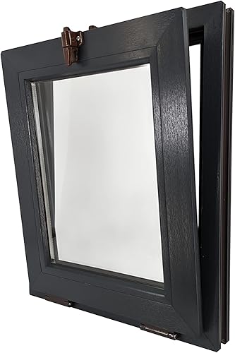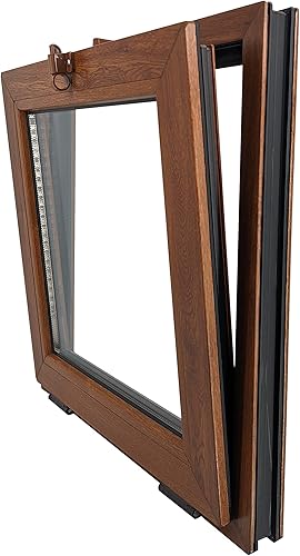 ECOPROF Kellerfenster | Gartenhaus Fenster | Kunststoff Fenster | Maße 60x50 cm (600x500 mm) | Farbe: Goldene Eiche (beidenseitig) | 52mm Profil