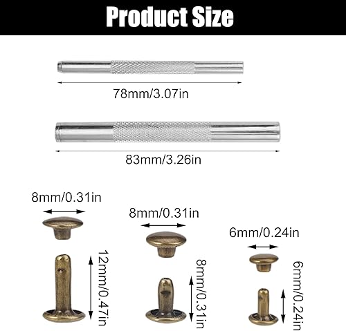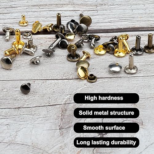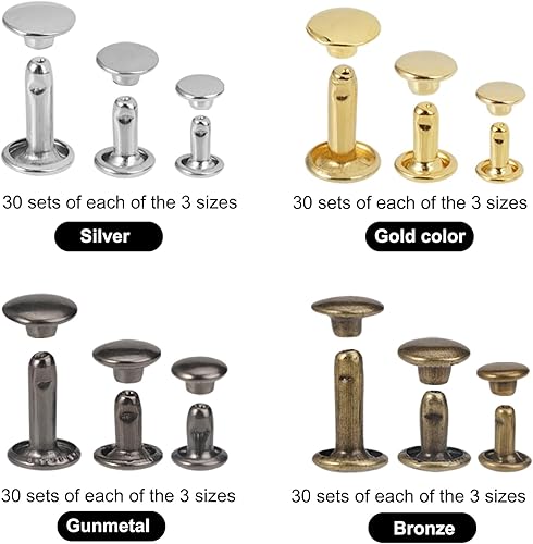 EXIN DEHCEN Nieten für Leder Nieten Set, 360 Stück Lochzange Hohlnieten Set für Leder, Metallniete Doppelkappe mit Nietenzange 3 Werkzeug für DIY Handwerk, Reperatur Dekoration, Gold Silver Bronze