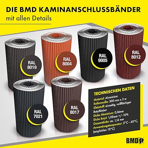 BMD Kaminanschlussband | 6 Farben | 300 mm x 5 m | anthrazit RAL 7021 | UV-beständiges selbstklebendes Anschlussband | zur Abdichtung am Schornstein, Dachfenster, Erker, Kamin, Wand
