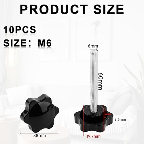 BREANIFULL 10 Stück Knopf Stern Schraube M6x60mm Stern Klemmknopf Griff Rändelschraube knopf Handhaben Klemmung Schrauben,Sterngriffmutter Sternschraube für Industrie Equipment