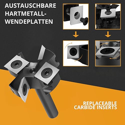 SpeTool Planfräser 8mm Schaft 38.1mm Durchmesser Planfräser für Oberfräse Hobelfräser für holz mit Wendeplatten 2+2 Flöten CNC Fräser Flächenfräser Abflachfräser Oberflächenbit
