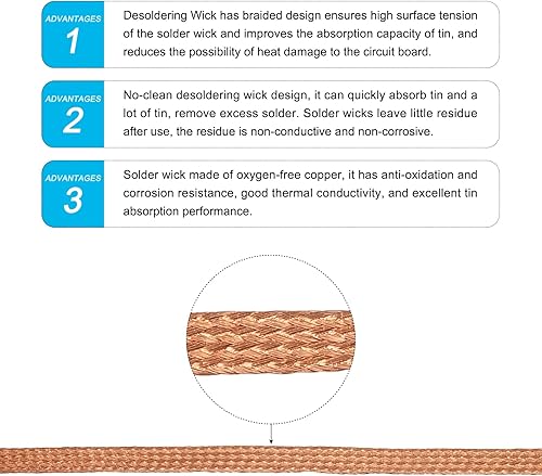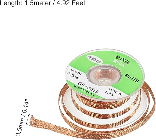 sourcing map Lötdocht Geflecht Kein Reinigen Entfernen Dochtgeflecht 0.14' Breite 4.92Ft Länge für Entfernen Gelöteten Elektrische Komponenten 2 Pack