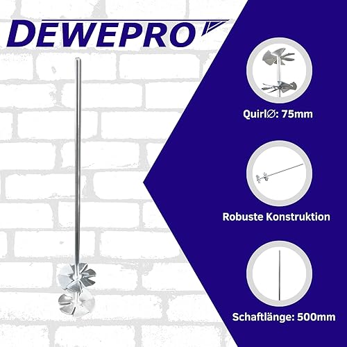 DEWEPRO® Scheibenrührer - Farbrührer mit Doppel-Sternkopf verzinkt, Farbmischer ø75x500mm, Rührquirl zum Verrühren von Farben und Flüssigkeiten