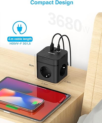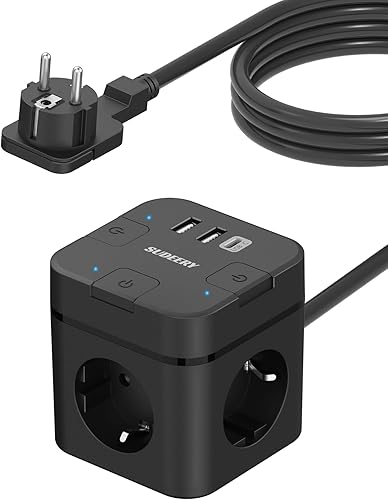 6 in 1 Steckdosenwürfel mit USB C, 3 Fach Steckdosenleiste Flachstecker mit Einzeln Schaltbar, Mehrfachsteckdose Würfel mit 2m Kabel, 1 Typ-C USB Mehrfachstecker für Büro Hause Reisen (Weiß)