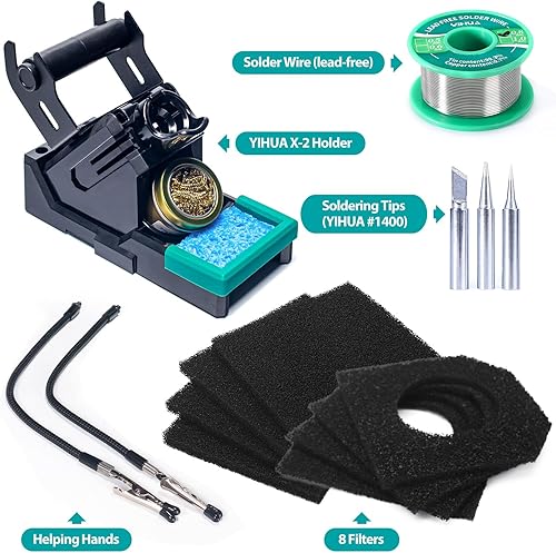 YIHUA 948DQ-III 2-in-1 Lötdampf-Absaugventilator 110W Lötstations Lötkolben Set Lötabsaugung Lötrauchabsorber neigbarer Winkel mit Helfenden Händen Eisenhalter Eisenspitzen Filter Lötdraht (EU PLUG)