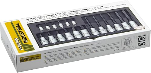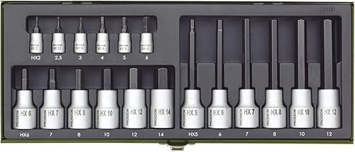 Proxxon 23100 Spezialsatz für Innensechskantschrauben mit 6,3mm (1/4') HX2-HX6 und 12,5mm (1/2') Antrieb HX6-HX14 (kurz) & HX5-HX12 (lang) 18teilig
