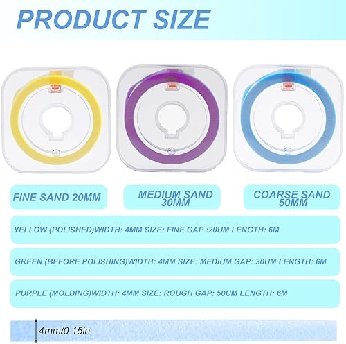 YANINEE 3 Bände Zahn Schleifpapier, Zähne Polieren, Zahnschleifpapier (20μm x 4mm x 6m, 30μm x 4mm x 6m, 50μm x 4mm x 6m)