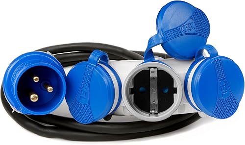 KEL Camping CEE Steckdose - 250V / 16A Caravan-Steckdose, Kupplung mit IP44-Verschraubungen, für den Außenbereich, Wechselstecker für Wohnwagen und Wohnmobile und Yachten