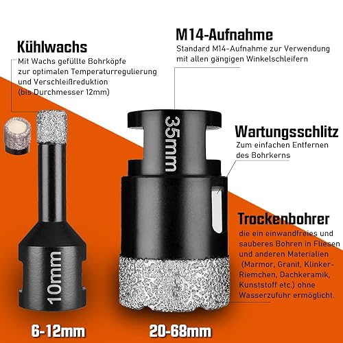 M16 Diamant Dosensenker Turbo Dosenbohrer 68 mm mit SDS PLUS Bohrkrone, 5 Diamantsegmente, Nutzlänge 95mm, Steckdosenbohrer Kronenbohrer Lochbohrer Lochsäge für Mauerwerk Kalksandstein Ziegel Putz etc