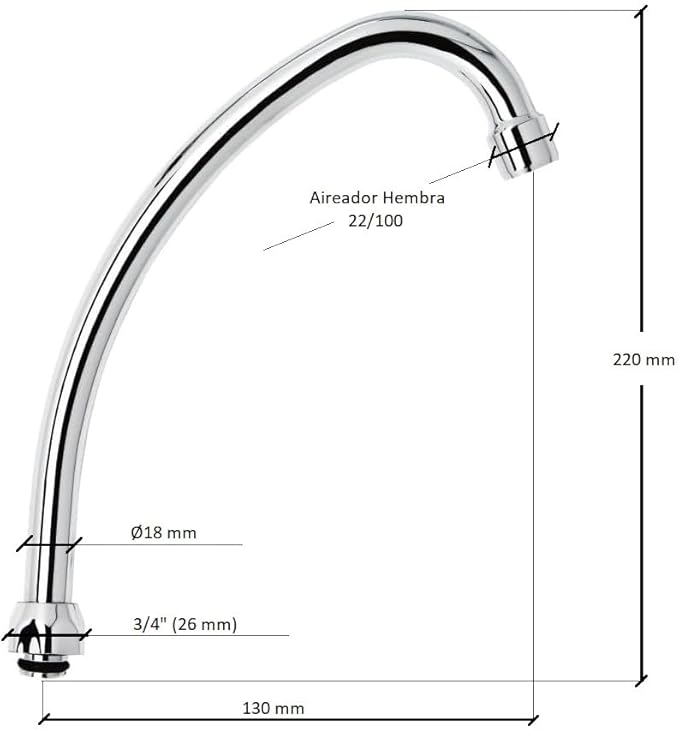 MONTSERRAT 0032.002 Auslauf vertikaler Schlauch für Wasserhahn oder Mischer, Silber, 22 cm
