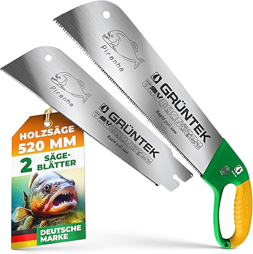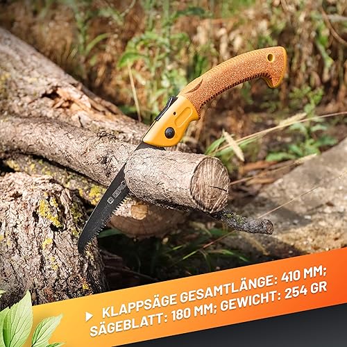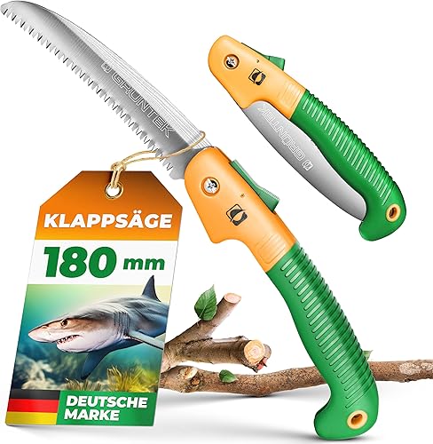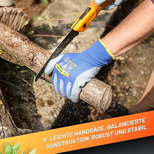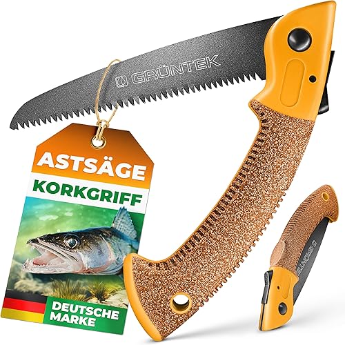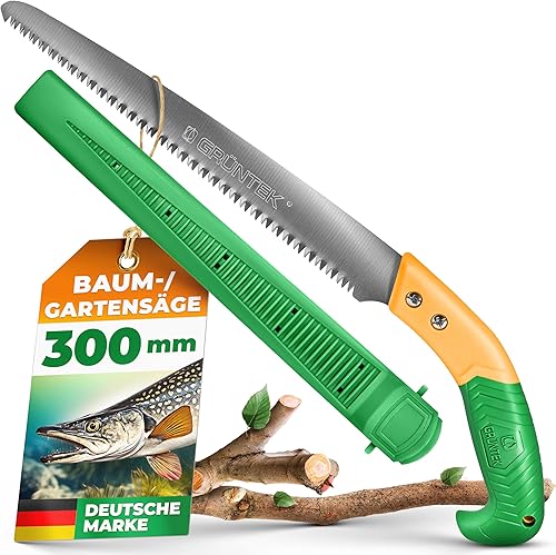 GRÜNTEK ORCA Gartensäge 300mm - Gebogene Astsäge mit 65Mn-Kohlenstoffstahl, 7 Zähnen/Zoll, Ergonomischem 2-Komponenten-Griff und ABS-Holster mit Gürtel-Schlaufe