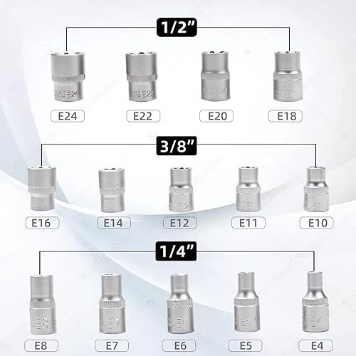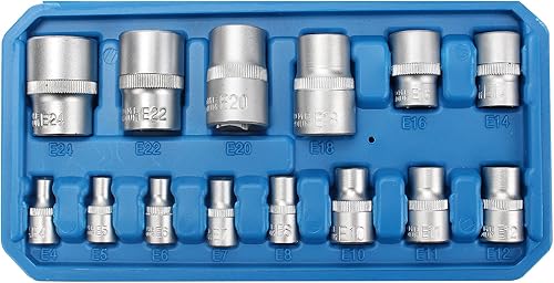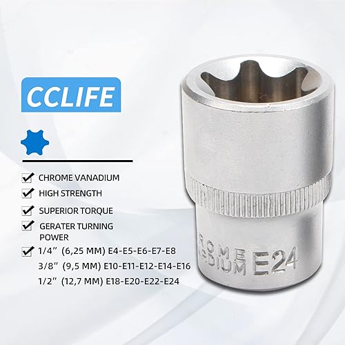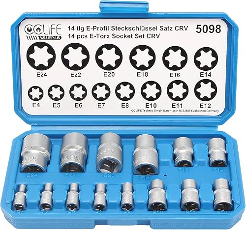 CCLIFE 14tlg Torx Nuss Set E Profil Stecknüsse Steckschlüssel Satz Außentorx E4-E24 1/4 3/8 1/2 Zoll Steckschlüsseleinsätze