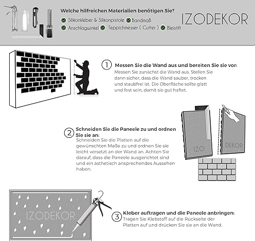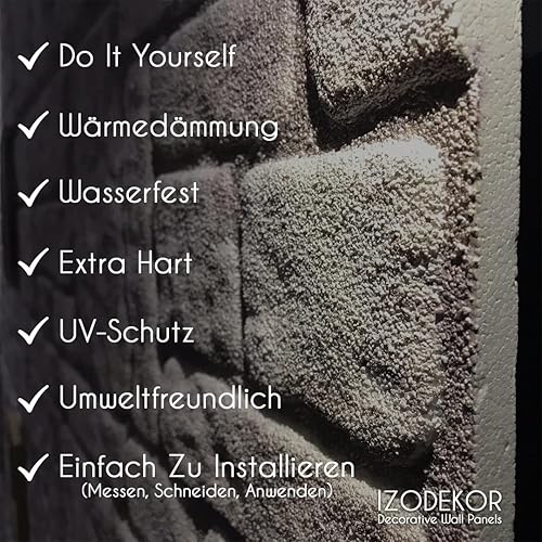 IZODEKOR Wandverkleidung Steinoptik Styropor 3D Wandpaneele - Verblender Steinoptik für Küche, Badezimmer, Balkon, Schlafzimmer, Wohnzimmer, Küchenrückwand und Teras | Schneewittchen